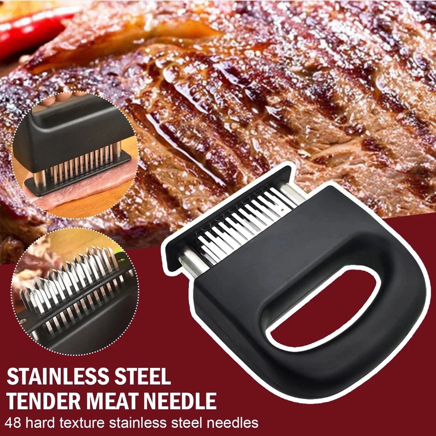 Our Stainless Steel Meat Tenderizer is the perfect kitchen tool to make your meat tender and juicy like a pro. Its sharp blades penetrate deep into the meat, allowing marinades to infuse effortlessly. Easy to carry, you can even take it on picnics and camping trips!